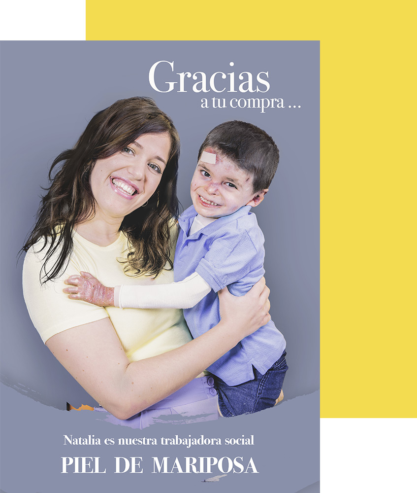Con el simple hecho de comprar en nuestras Tiendas Solidarias ya estás dando alas a las familias Piel de Mariposa.